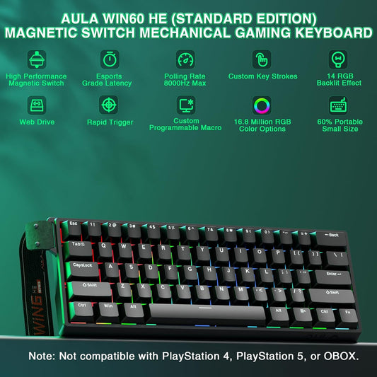 WIN60 HE - 60% Mechanical Gaming Keyboard Wired, Magnetic Switch Hot Swappable, Adjustable Actuation Rapid Trigger Mode, 8000 Hz Polling Rate, RGB Small Keyboard 60 Percent Compact Design for PC